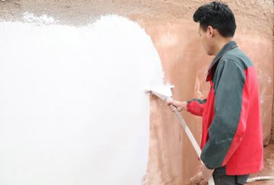 真石漆噴涂機 溫馨走進施工現場 展示團隊關